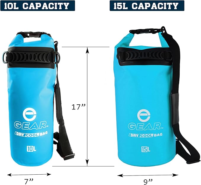 - Portable Cooler Dry Bag – Can be used as a kayak cooler or waterproof dry bag. Useful for beach days, rafting, boating, hiking, biking, camping and fishing. A great gift for family or friends. 10L capacity - Holds up to 8 cans or 2 wine bottles plus ice.