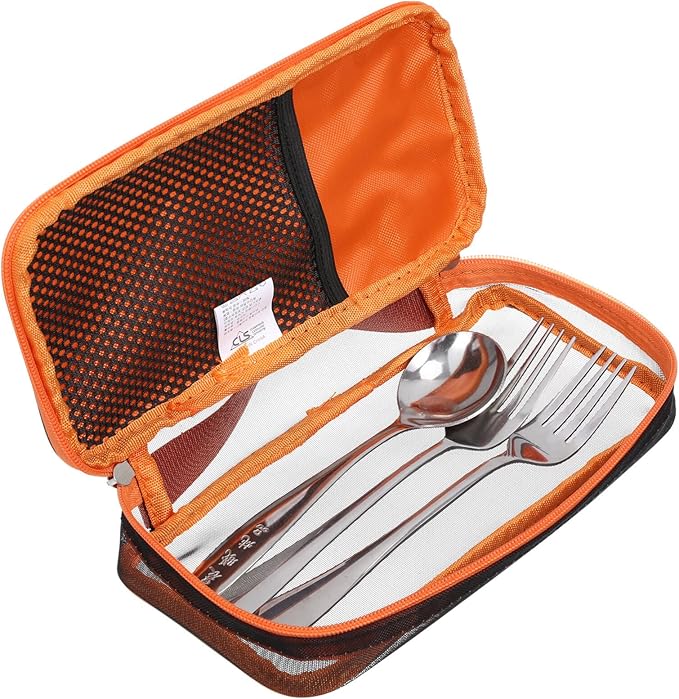 - 🍴Camping Hiking Travel Cookware Kit Case - The silverware travel case has the sleek, compact design, let you neatly organize your utensils in one place for simple and easy use.