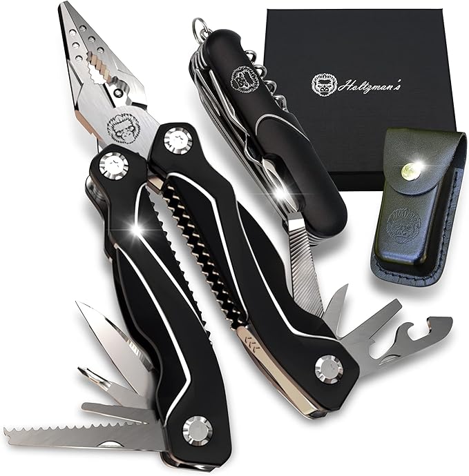3 Piece Pocket Multitool Gift Set for Him-Stainless Steel Survival Multi Tool for Men - Clip to Belt & Backpack - Utility Knife Multitool, Pliers & Pocket Knife - Hiking, Camping & Fishing