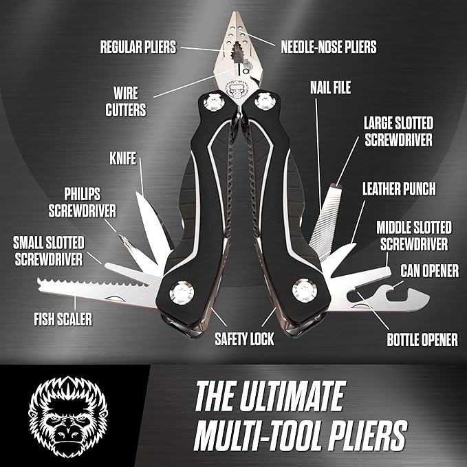 - 14 IN 1 MULTITOOL - It's every pocket tool you could want, all packed into one handy multipurpose tool! With a wide range of tools including a BLADE, SCISSORS, SAW, SCREWDRIVER and more, these multitool pliers will stay rust-free and functional to give you YEARS OF RELIABLE USE. Plus, unlike most competing multipurpose tools, ours includes a sharp and useful knife!
