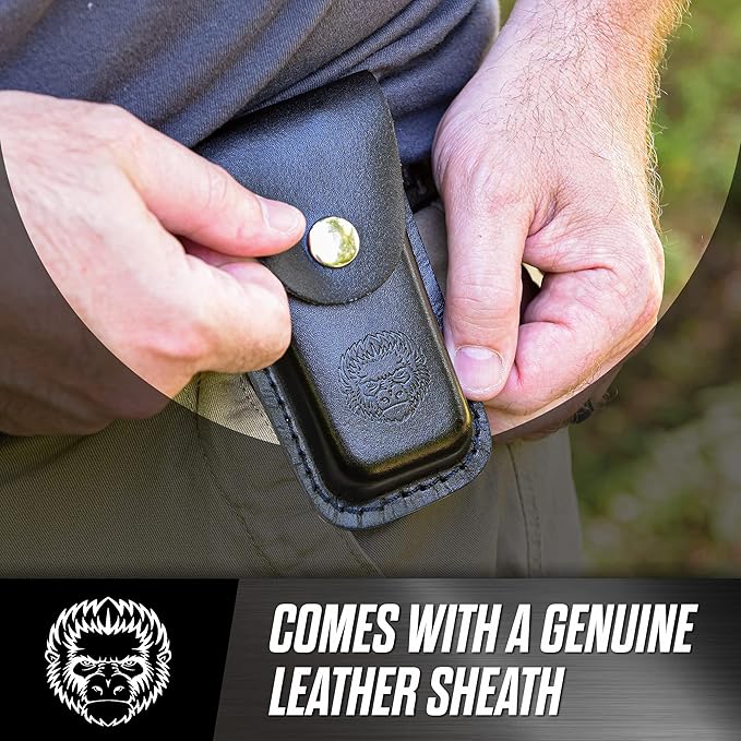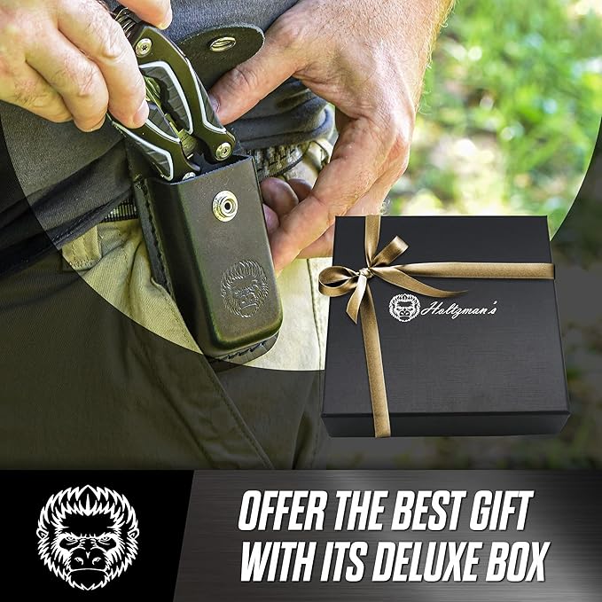 - EYE-CATCHING LEATHER SHEATH - We know that just giving you high-grade stainless steel tools that WON’T RUST, SNAP OR BREAK isn't enough when it comes to gifting. That's why our premium camping multitool gift set comes with an attractive MASCULINE LEATHER SHEATH! Enjoy gifting a camping multipurpose tool with a sophisticated edge that competing multitool knives simply can't match!