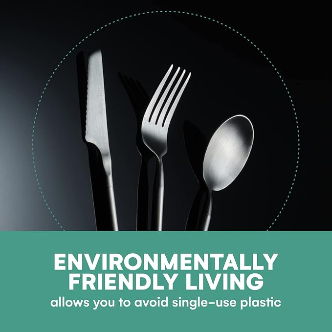- Premium Stainless Steel- Our durable stainless steel, portable cutlery set is designed to last so you can use and re-use at your pleasure as your official backpacking silverware