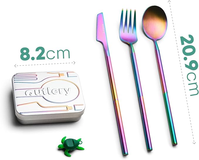 Outlery | Portable & Reusable Stainless Steel Travel Cutlery Set (Rainbow) - Includes Travel Case for Easy Transport