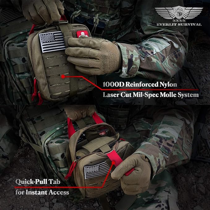 - ✅【Everlit Emergency Trauma Kit】: Uniquely customized by U.S military VETERANS to get you well-prepared in advance to emergencies during the outdoor adventure, hunting, camping, travel, disaster, and accident. The Everlit Emergency Trauma Kit is ideal for field tactical medics, police, military, combat life savers, first responders, outdoor enthusiasts and more!
