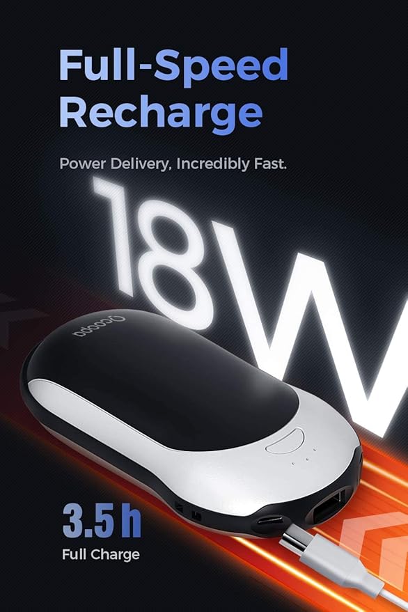 - What You Will Get: Perfect gift package includes Ocoopa H01-PD rechargeable hand warmer, USB-C to USB A cable, travel pouch, user manual and great after-sales service.
