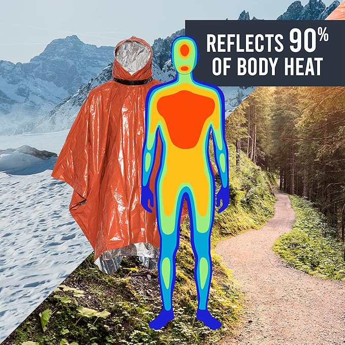 - ✅ 【100% Waterproof Poncho】Sealed seams and windproof material protects you from wind, rain, and snow. It reflects up to 90% of your body heat, keeping you warm, dry, and safe in extreme conditions.