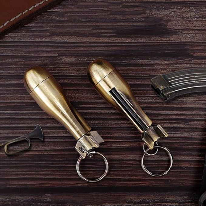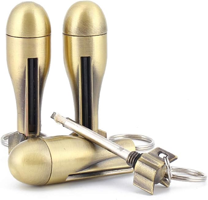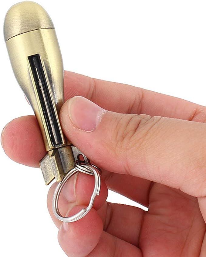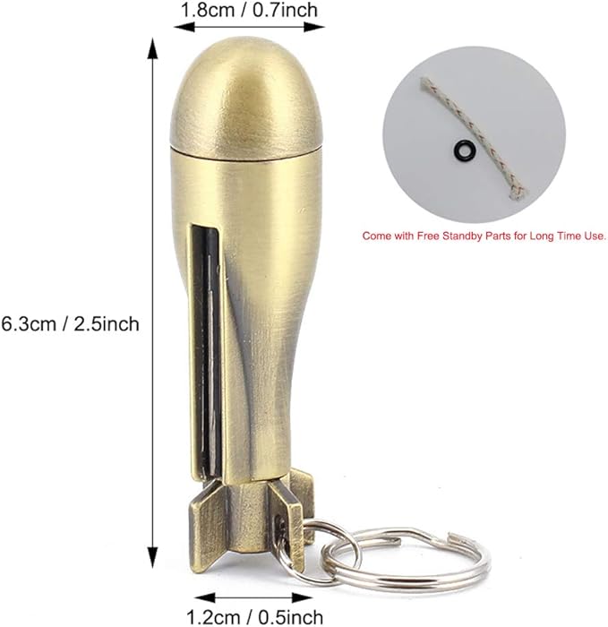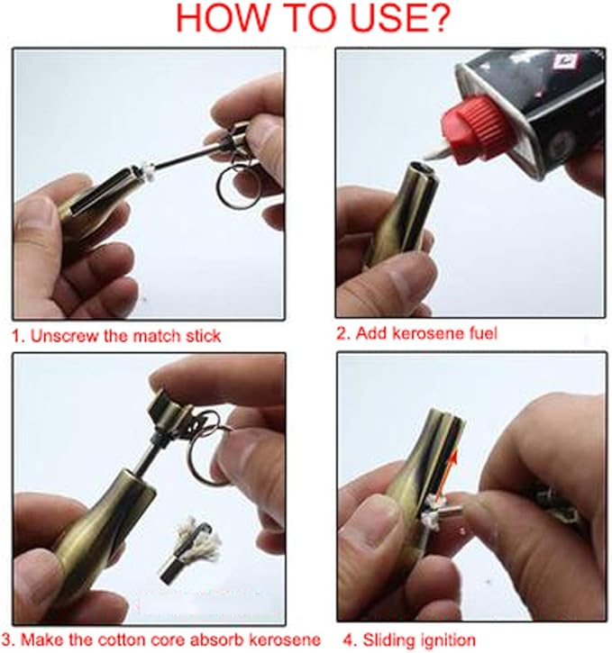Keychain Matchstick Fire Starter, Permanent Match Flint Metal Keychain Lighter, Great Kerosene Refillable Keychain Lighter for Outdoor Camping