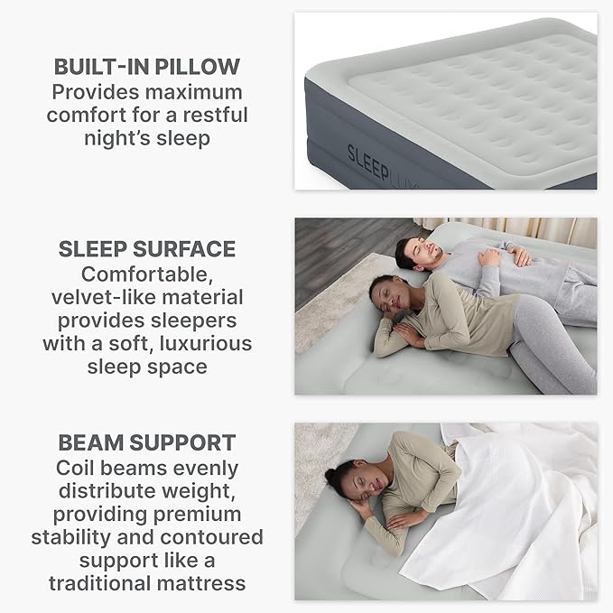 • GET A GOOD NIGHT'S REST: SleepLux's luxury king air mattress is designed to be the softest sleeping surface with our plush Snugable Top. It provides unparalleled comfort compared to other blow up airbeds, as it helps you retain body heat all night long.