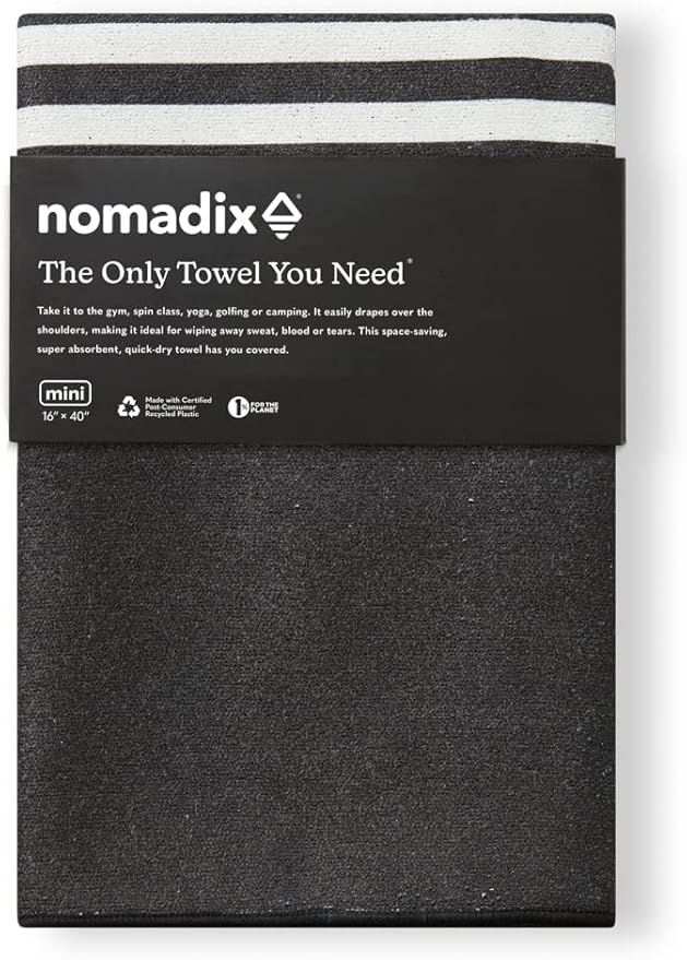 Nomadix Mini Towel - Perfect for The Gym, Biking, Hiking, Golf, & More - Made with Recycled Materials - Super Absorbent - Quick Dry - Sand Resistant - Poolside Black - 40x16 in
