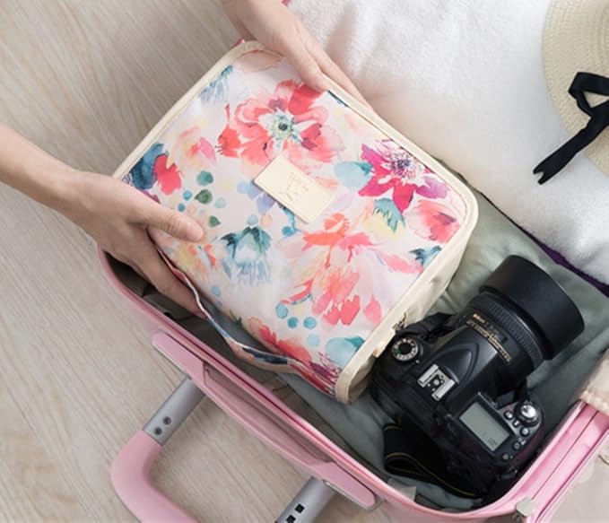 • LARGE CAPACITY - Size: 9.45"L x 7.48" W x 3.74" H. You can put your make-up, shampoo, toothbrush, toothpaste and so on, all in one place. Make your travel comfortably to have all your necessities in one bag
