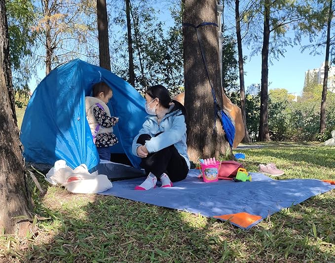 - Sandproof & Water Resistant & Tear Resistant - Made from Rip stop Polyester Fabric, this lightweight tarp dries up extremely fast and easy to clean, sand easily shaken off, making it a sand free blanket for beach. This sand proof blanket also has the best puncture and tear-resistant material that holds up to dogs walking or lying on it. It can protects you from twigs, grass, rocks, insects etc.
