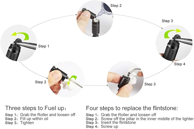 - Due to transportation limitation. The Lighter is not fueled up. Please purchase and fuel up with the right fuel for lighter. The two small replacement tools inside should be screwed in the barrel in the left hand direction. Not common right hand direction