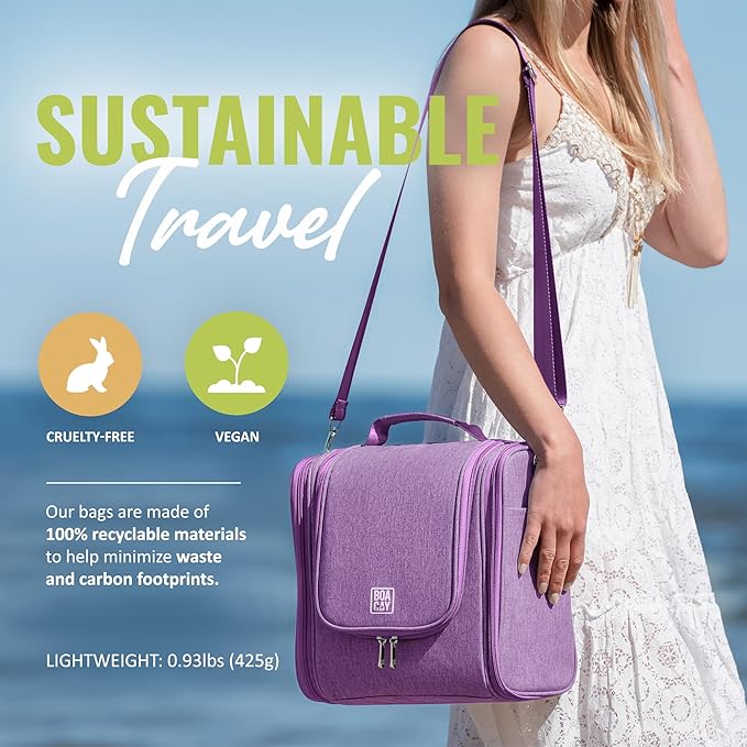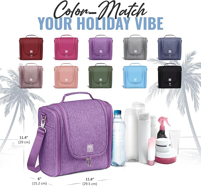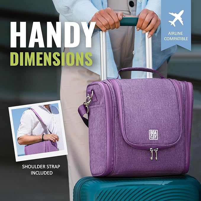• If you want a large makeup bag, a cosmetic, or an accessories organizer, Boacay toiletry bag is for you. It is multifunctional, has metal zipper pulls, and it’s made of only high-quality materials.