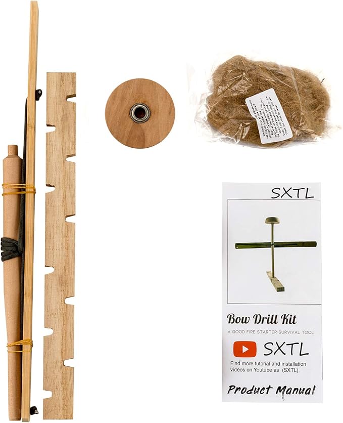 SXTL Bow Drill Fire Starter Kit Outdoor Survival Practice Tool, Friction Fire Starter for Scout, Backpacking and Camping, Survival Training and Teaching