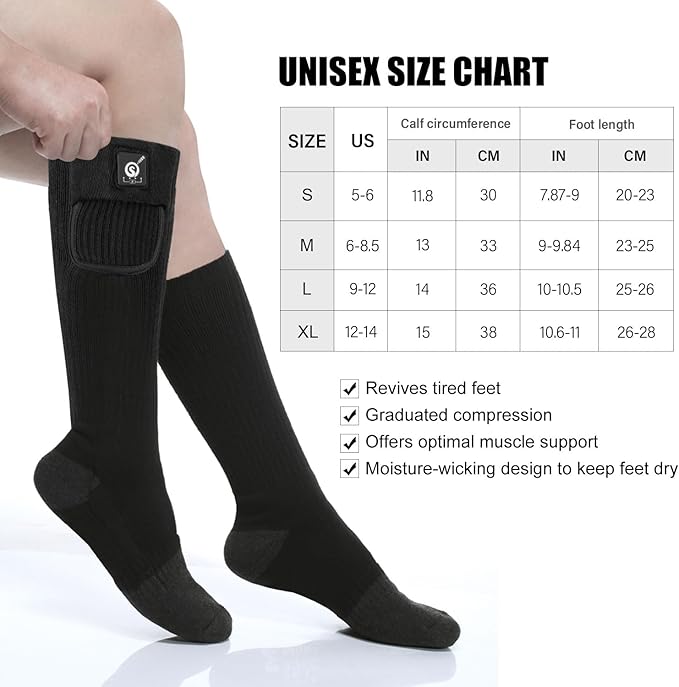- Recommended Uses For Product : For extended comfort and uninterrupted warmth, consider having spare batteries for your heated socks.You can search for additional batteries using the code: [B08J9S82KM]. For extended comfort and uninterrupted warmth, consider having spare batteries for your heated socks.You can search for additi… See more