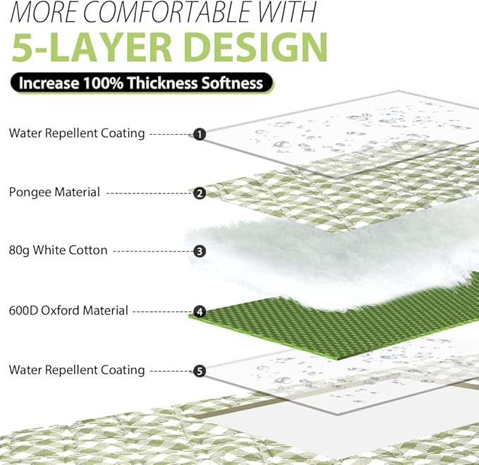 - Soft and Durable with 5-Layers: Made of 5 layers, our picnic mat has thickened and sturdy fabric on the top, soft cotton for middle and solid fabric backing. Perfectly suitable for siting or lying on grass, beach, floor or any kindly of surface, giving you soft and comfortable feelings