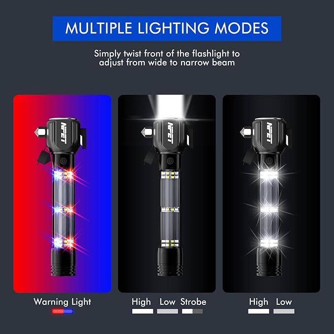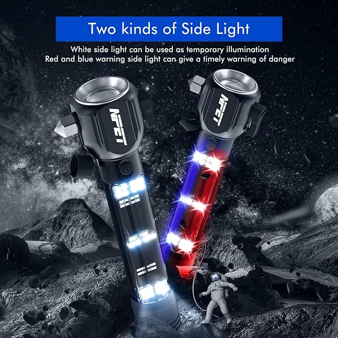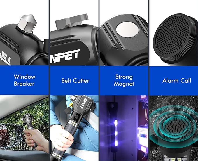 - 【Car Emergency Escape Tool】: Features with window breaker break the stuck window and the seat belt cutter to cut the jammed seat belt; bring safe escape in emergencies, having a self defense LED flashlight tactical can help you get out of most sticky situations.