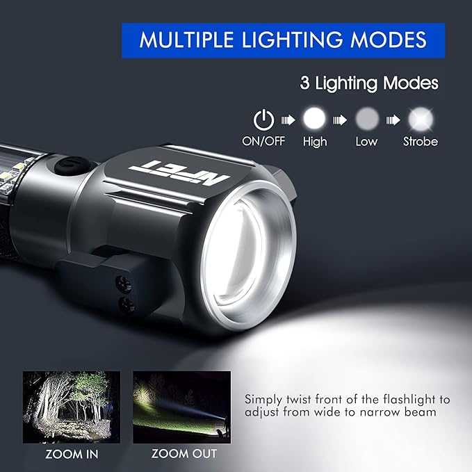 - 【HANDS-FREE】: With a powerful magnet on the side of the flashlight head, you could attach it to the car or other metallic surface to use as a work light,camping lamp or emergency warning light.