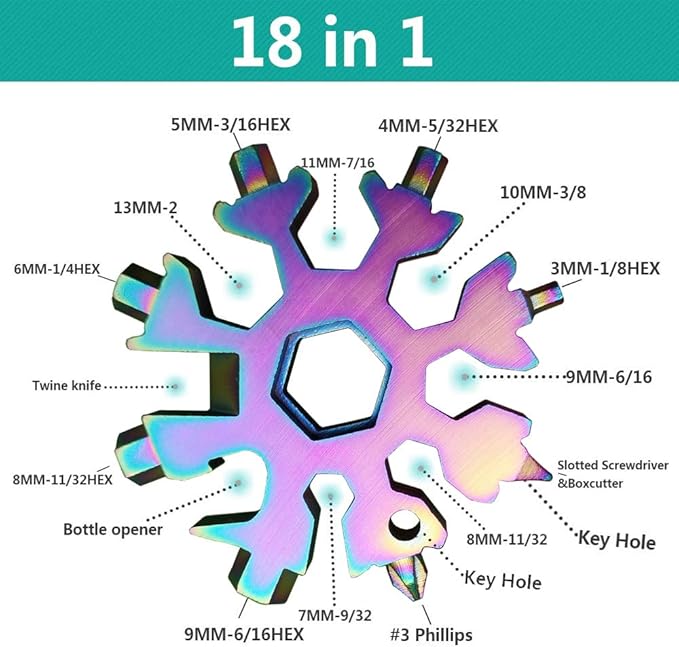 18-in-1 Snowflake Multi-Tool Screwdriver, Stainless Steel 18-1 Multitool Snow Tool (Multicolor)