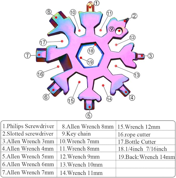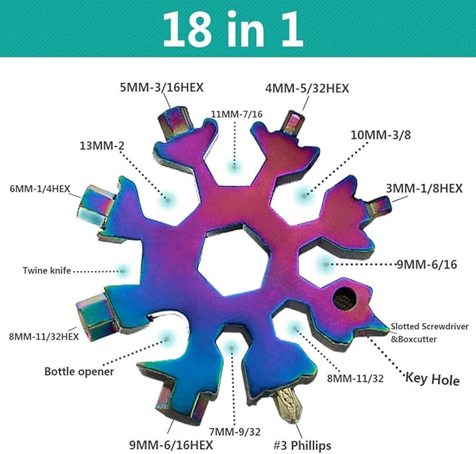 18-in-1 Snowflake Multi-Tool Screwdriver, Stainless Steel 18-1 Multitool Snow Tool (Aurora)