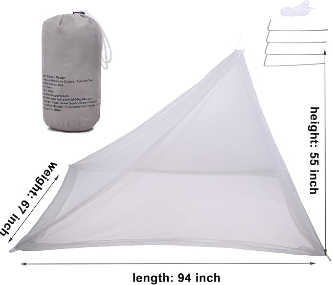 - Design: The asymmetric shape means the apex of the pyramid is closer to the head end for a more usable headroom, can provide more usable head room and make you feel more comfortable when you inside. Camping mosquito net fits easily into your backpack and carry-on boarding luggage, easy carry, set up and fold it all by themselves when they go to scouts.