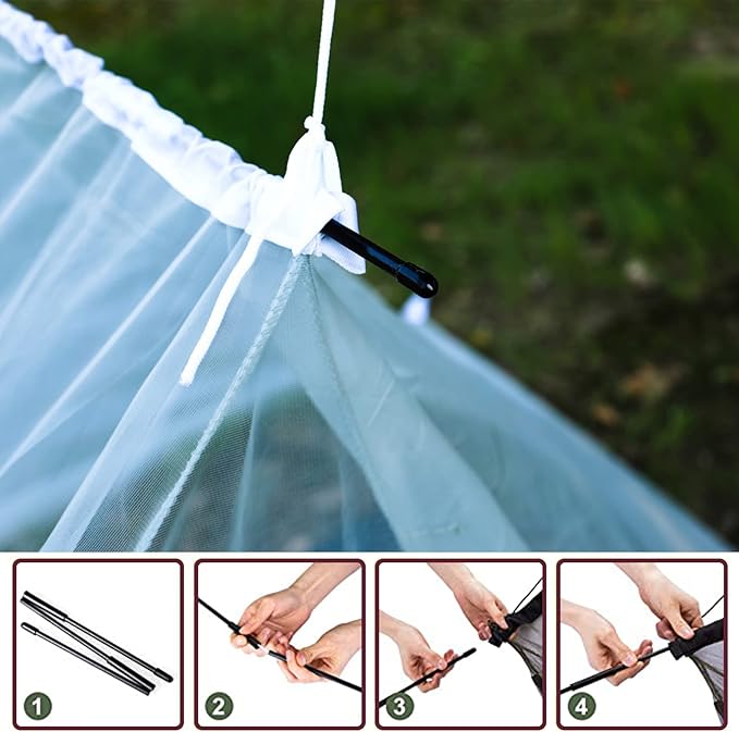 - Function: Noseeum netting is perfect for all your travel adventures such as camping trips, hiking, even used in your backyard watching the stars. With 3 straps and tightly woven can protect you from mosquitoes, noseeums, flying insects, bees, ladybugs and other pesky bugs while you sleep outdoors. Please place the bottom part under the sleeping mat to avoid insects, mosquitoes from sneaking in underneath.