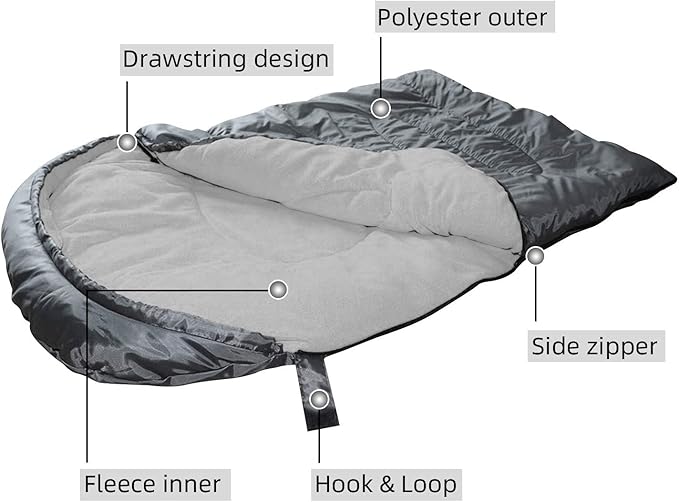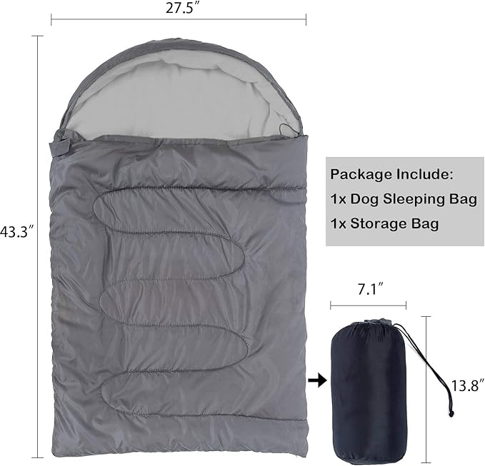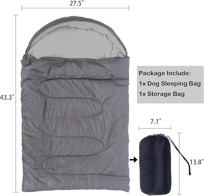 - 【Size】:The Pet sleeping bag dimension approx.43.3"Lx27.5"W, its width can be up to 58" when you open it with side zipper, you also can use it as bed mat cushion at home backyard. Please measure your dogs body length before ordering this dog sleeping bag.