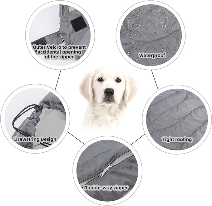 - 【Safe Design】: With zipper on the tail and one side of the bag, and drawstring design on the head keeps dog protected.