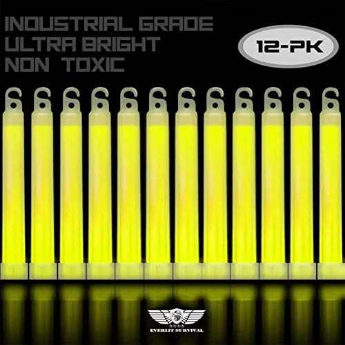 EVERLIT Survival Emergency Glow Sticks- 6 Inches Light Sticks for First Aid Kit, Survival Kit, Camping, Hiking, Outdoor, Disasters, Emergencies Up to 12 Hours Duration… (12 Pack, Yellow)