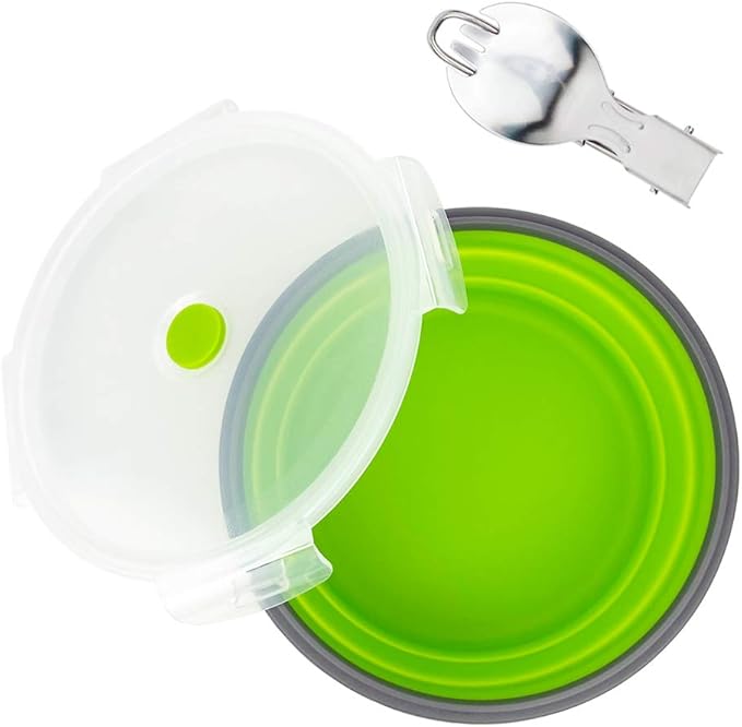 - You will get a premium collapsible silicone bowl and a 2 in 1 spoon fork. What's more, you can get 12 months warranty. We promise to offer you a satisfying solution If you have any questions about the silicone camping bowl.