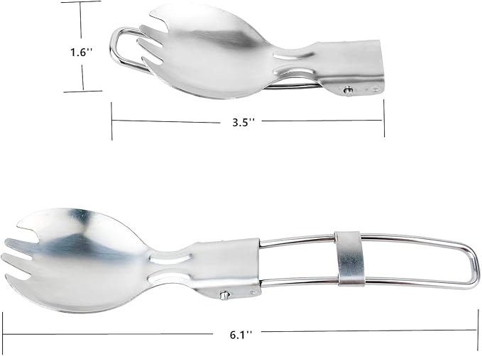 - The silicone bowl can be collapsed into half of original height, which is compact and portable for you backpack and suitcase. And the 2 in 1 spoon fork is foldable too, which will reduce your burden of your trip and enjoy meals anytime and anywhere you want.