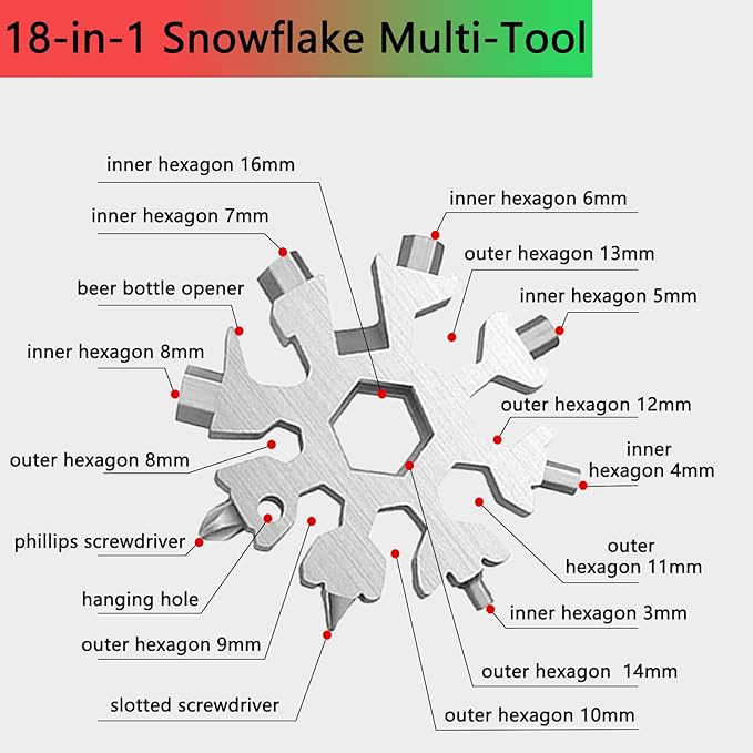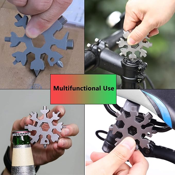 18 in 1 Snowflake Multitool,Stainless Steel Snowflake Tool for Key Chain/Bottle Opener/Flat Phillips Screwdriver Kit/Wrench,Snowflake Handy Tool as Gift for Father, Husband, Boyfriend at Christmas