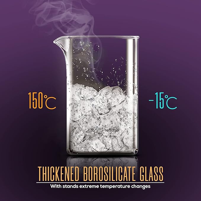 - Durable heat resistant borosilicate glass carafe beaker sits in stylish insulated plastic frame which makes pouring coffee easier and prevent wobbling