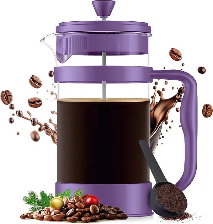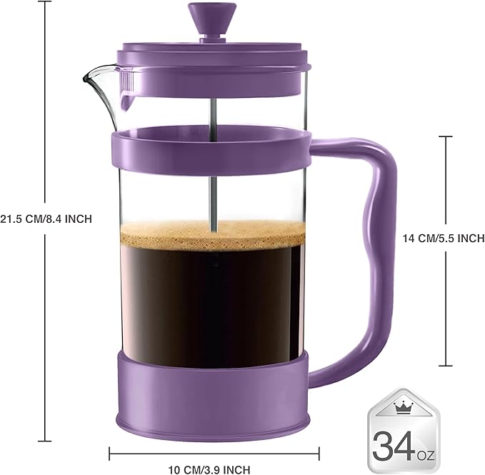 Utopia Kitchen 34 Ounce 1 Liter French Press Coffee Maker, Tea Maker, Travel Coffee Presses, Heat Resistant Thickened Borosilicate Coffee Pot for Camping Travel Gifts, Plum Pack of 1