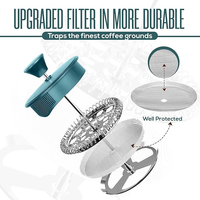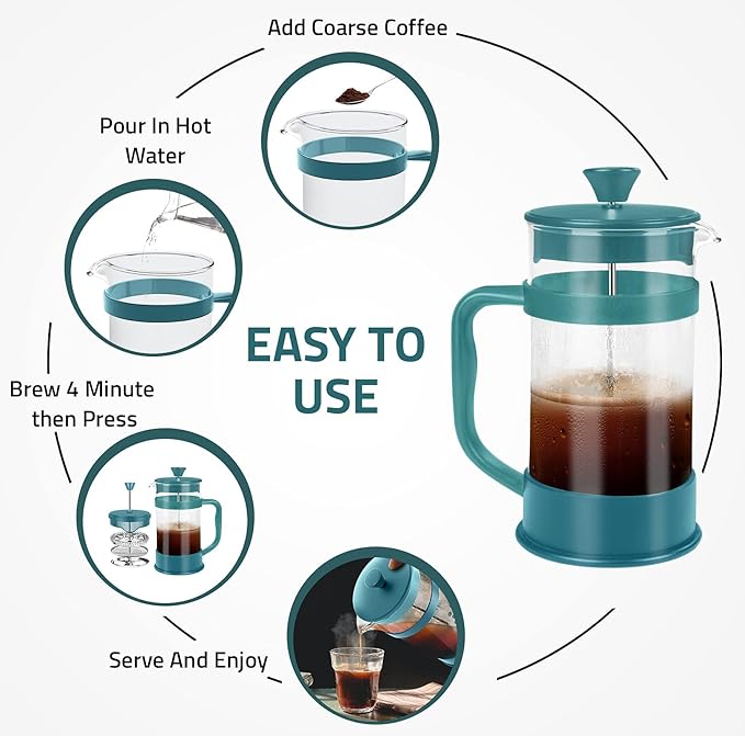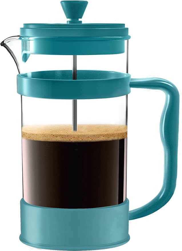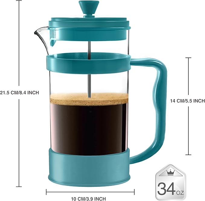 Utopia Kitchen French Press Espresso and Tea Maker with Triple Filters, Stainless Steel Plunger and Heat Resistant Borosilicate Glass (Aqua, 34-oz (Pack of 1))