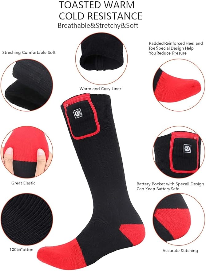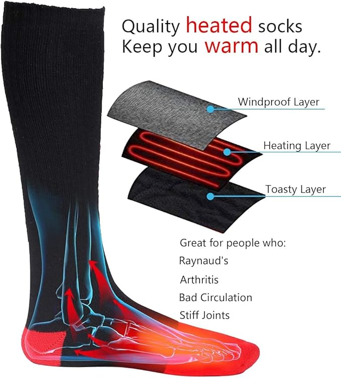 Heated Socks Men Women Battery Sock for Cold Feet Thermal Electric Socks for Camping Winter Footwarmers