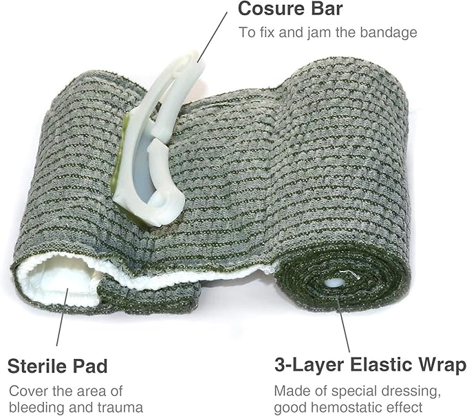 - Israeli battle dressing (IBD) far exceeds the design of general first aid bandage, integrated disinfection gauze, fast hemostatic bandage, pressure-integrated device, equivalent to a small emergency system, widely used in outdoor survival, you can use this 3.6m elastic bandage as rings, splints, and even a simple tourniquet in an emergency.