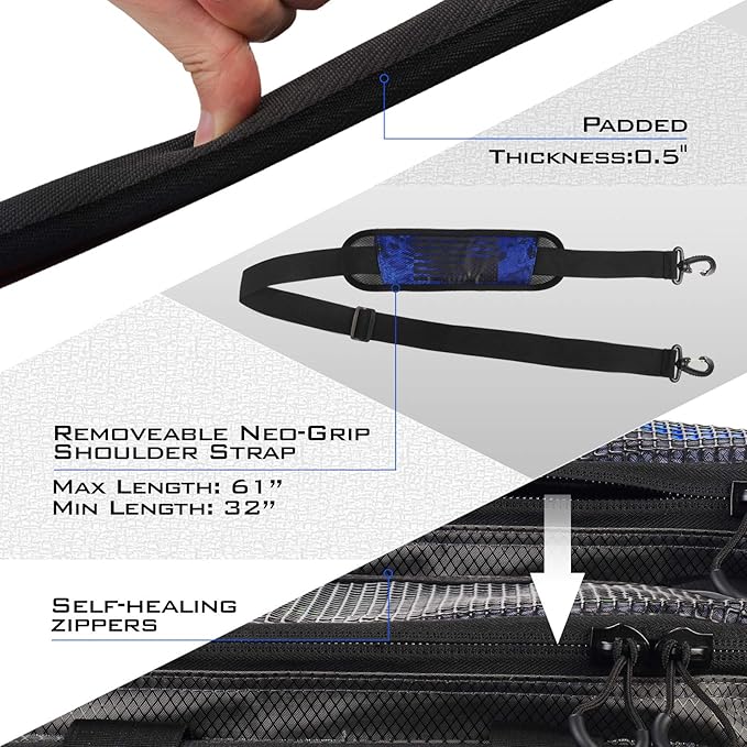 • FUNCTIONAL DESIGN - Designed for function and efficiency with the angler in mind, the molded tool holder ensures easy access to fishing pliers or other fishing tools without fumbling through your bag with a fish on the line. Our front pocket is designed to hold one 3600 tackle box tray for additional bait capacity. Double loop zipper pulls offer quick and easy one finger operation, and self-healing zippers ensure your bag won’t become useless by an accidental split zipper.
