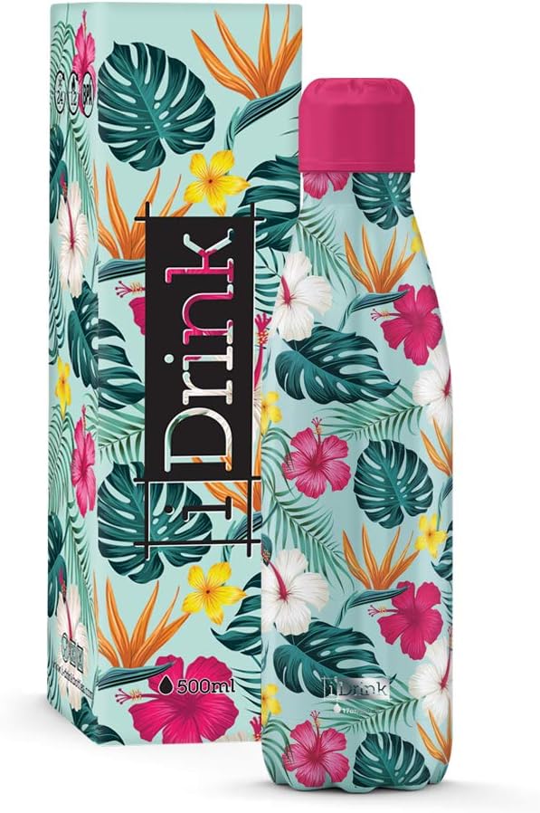 IDRINK® - Revolutionary thermal bottle, 2 walls, stainless steel bottle, 500 ML TROPICAL