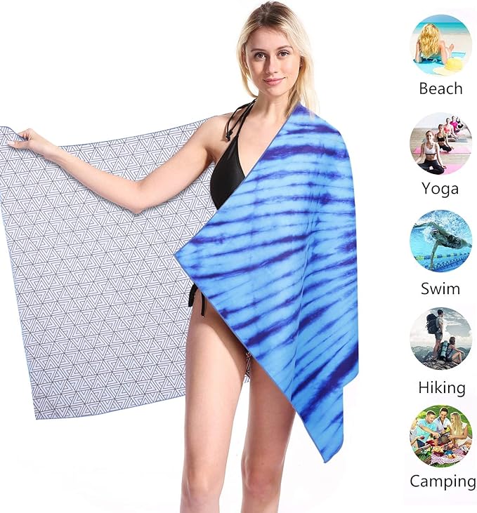 Microfiber Pool Sandproof Beach Towel Blanket - Quick Fast Dry Sand Free Proof Compact Outdoor Camping Travel Swim Micro Fiber Thin Yoga Mat Personalized Gift for Women Man Adult Blue Tie Dye