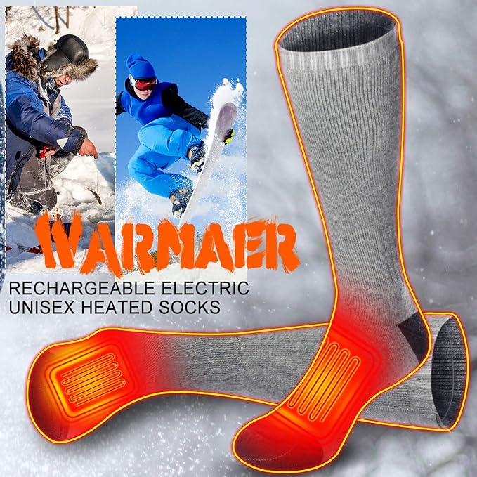 - ⛷Wide Application: Winter warm hunting heated socks foot warmer rechargeable sox one size fits all 6-13, perfect for a variety of indoor outdoor events like hunting, hiking, riding, fishing, cycling, driving, running, camping, skiing, climbing, walking dog, ice fishing and other indoor or outdoor activities in winter. If you have any further questions during use, please contact us through your order number by buyer message. We will more than happy to assist you deal with any issue with ASAP.