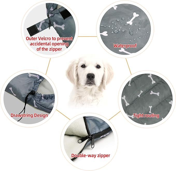- 【Safe Design】: With zipper on the tail and one side of the bag, it's very easy to use for your lovely pet, and its drawstring design on the head to keep dog protected.