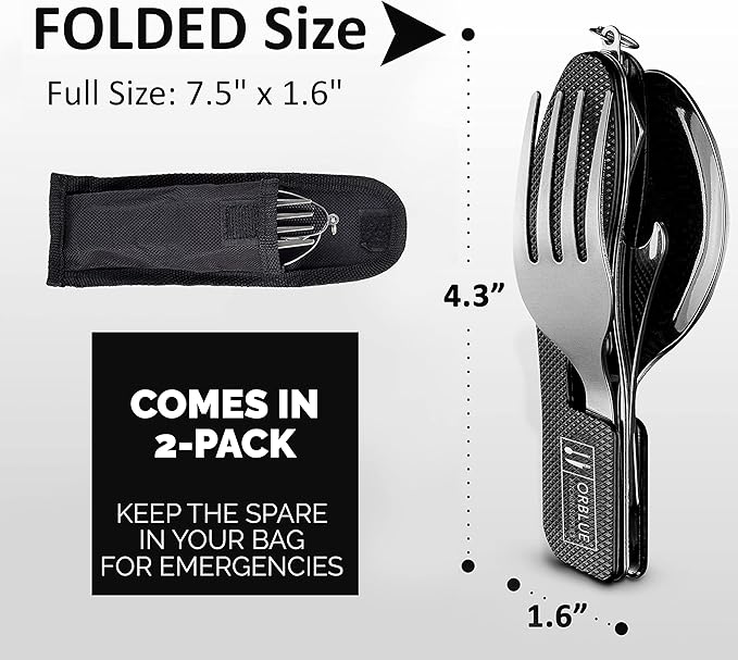 - 🍴 NO MORE BULKY OR BROKEN CUTLERY - Take the hassle out of eating when backpacking, hiking, or fishing. Ditch flimsy disposables or bulky silverware with our 4-in-1 tactical backpacking utensils.