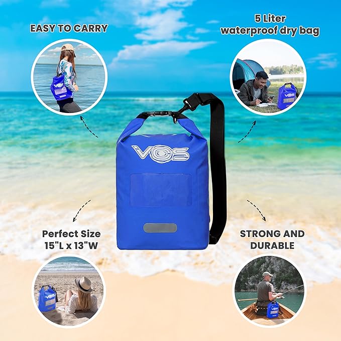 VOS Waterproof Premium Dry Bag – 5L | All-purpose Bag Lightweight Dry Storage Bag Backpack for Travel, Swimming, Boating, Kayaking, Camping, Beach (Blue)
