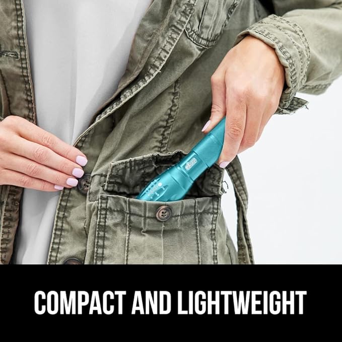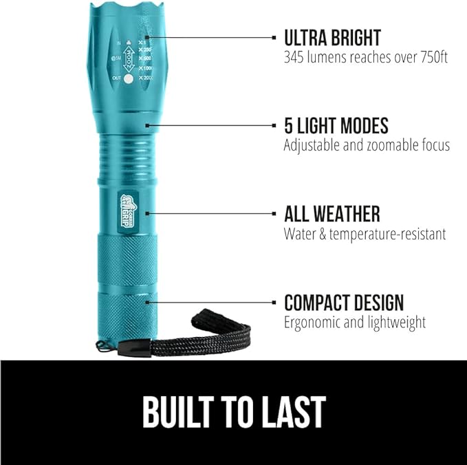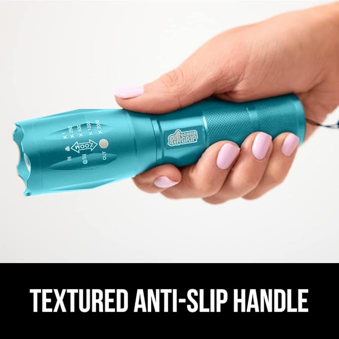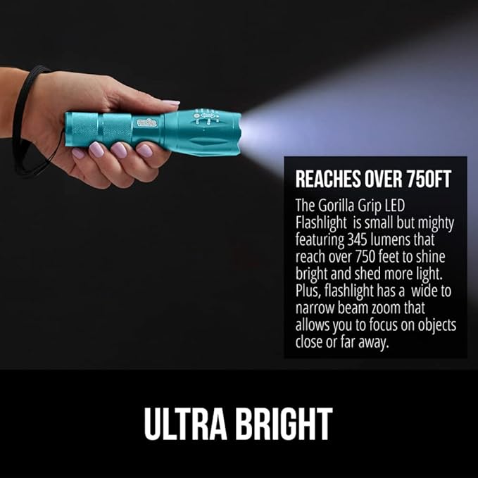 Gorilla Grip Powerful LED 750 FT Water Resistant 5 Adjustable Mode Tactical Flashlight, High Lumens Ultra Bright Battery Life Zoom Flashlights, Small Camping Car Mini Flash Light Accessories Turquoise