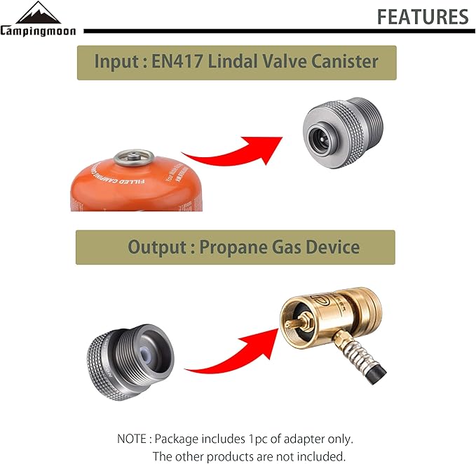 CAMPINGMOON Camping Grill Propane Gas Stove Adapter, Input: EN417 Lindal Valve Canister, Output: Propane Gas Stove Z20