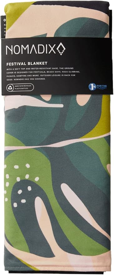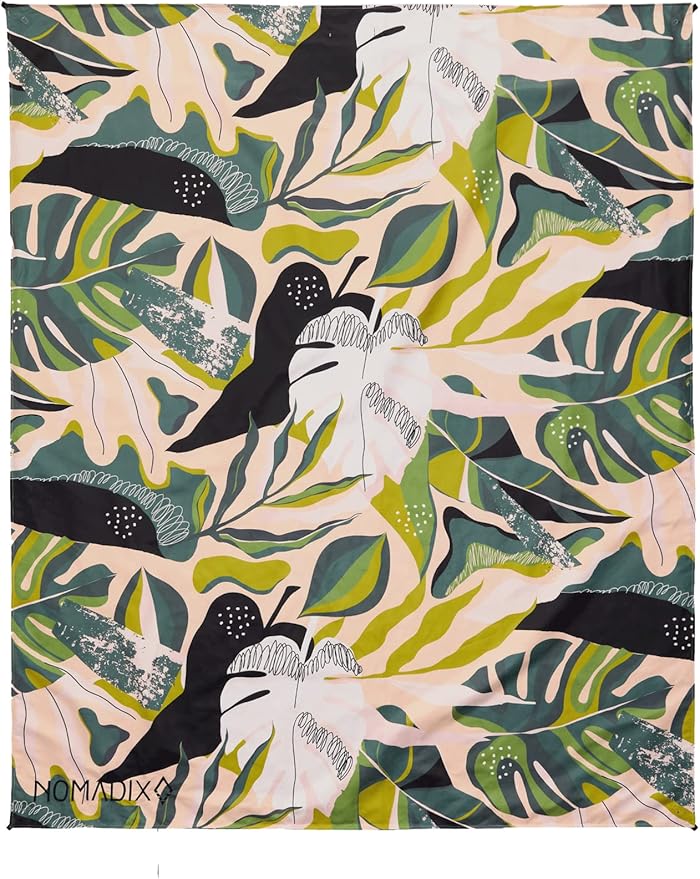 Nomadix Festival Blanket - Perfect for Picnics, Camping, & Lawn Seating - Plush Top & Water Resistant Base - Made with Post Consumer Recycled Materials - Monstera Green Pink - 60x70