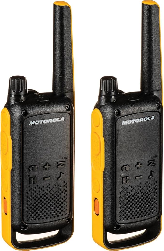 Motorola Solutions, Portable FRS, T470, Talkabout, Two-Way Radios, Emergency Preparedness, Rechargeable, 22 Channel, 35 Mile, Black W/Yellow, 2 Pack