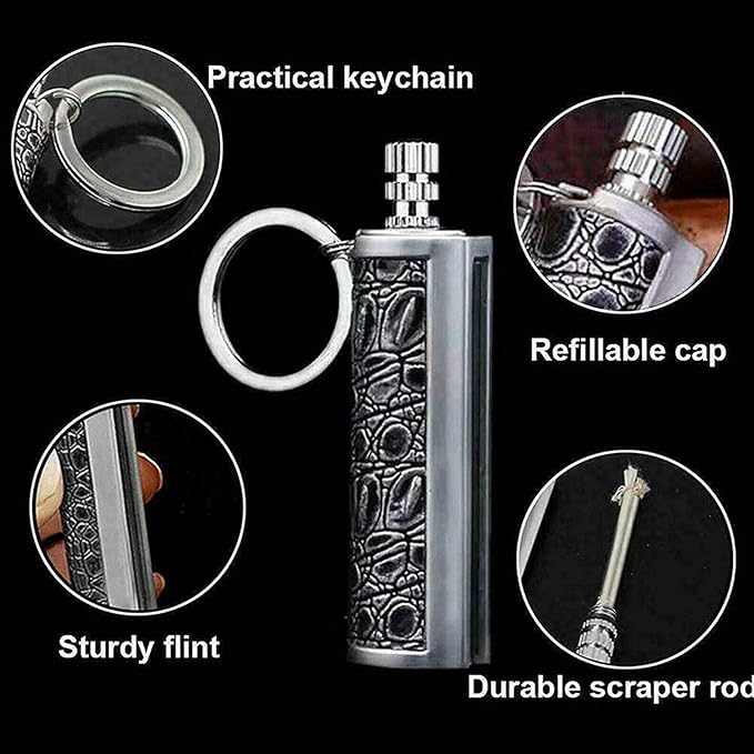 - 【LONGER-LASTING & WEATHER-PROOF】 These metal lighter keychains are made of stainless steel, durable and long-lasting, which can be refilled and ignited at least 10,000 times. Water proof, weatherproof, windproof, storm proof, infinite sparks in wind while wet or cold in all types of weather.