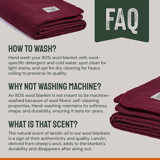 - EASY MAINTENANCE: Our blankets are low-maintenance, thanks to their self-cleaning wool fibers. Spot cleaning and a good shake go a long way. Machine washing may damage them due to the high-quality wool content, causing shrinkage and a loss of softness. Treat them with the love and care they deserve!
